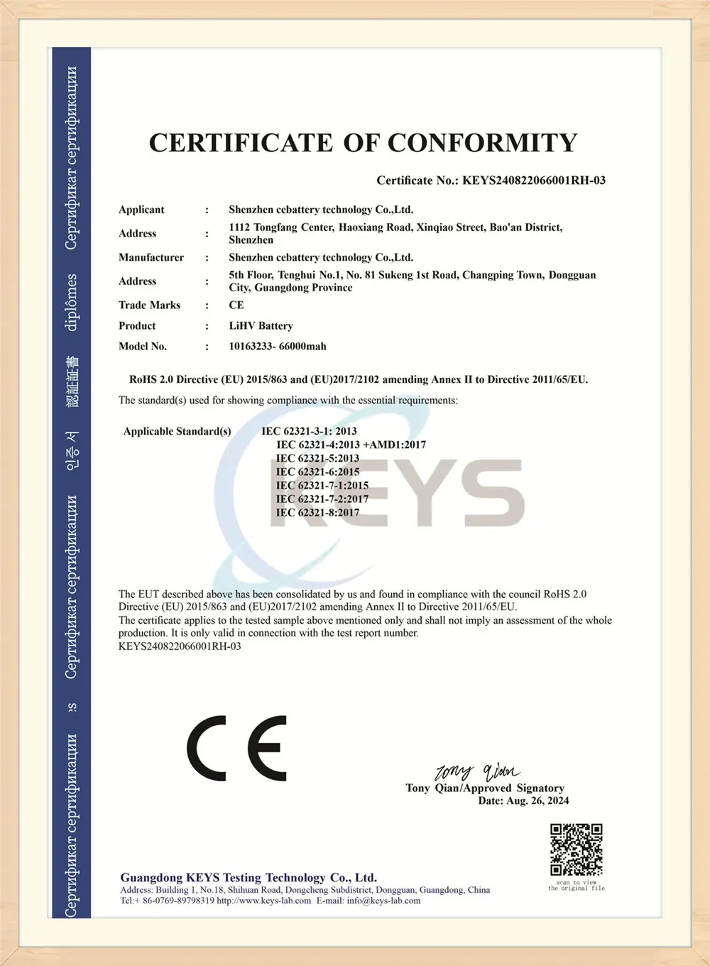 జైబాట్టే"క్వాలిటీ ఫస్ట్, సర్వీస్ ఓరియెంటెడ్, సమగ్రత కీపింగ్ వాగ్దానాలు" యొక్క వ్యాపార తత్వాన్ని ఎల్లప్పుడూ అనుసరిస్తుంది. ఉత్తమమైన మరియు స్థిరమైన బ్యాటరీ సరఫరాదారుగా ఉండటానికి, మేము అధిక-నాణ్యత పునర్వినియోగపరచదగిన బ్యాటరీ సాంకేతికతను అందిస్తాము మరియు జైబాట్టే ISO9001: 2015, UL, CE, FCC, UN, 3C వంటి అనేక అధికార ధృవపత్రాలను ఆమోదించారు.